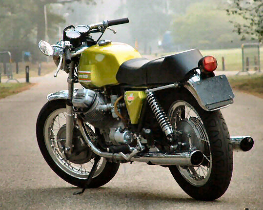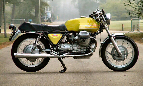 model: 750 V7 SPORT country: Holland engine number: VK31782 frame number: VK12766 name: Charles van Stralendorff email: kadeboer2@hotmail.com notes: My Sport has engine nr.Vk 31782 and frame nr. Vk 12766 It was registerd in February 1975, but it must be older than that. When I bought it it in 1987 it had a little damage from falling down on the right side. And the frame was sprayed red and it had a white fuel tank and tool boxes. On the tank was an Italian Tricolore painted. It also had a duc 750 ss tophalf also painted white. First thing I did was rebuiling the engine with new main bearings and bid-ends because it sounded pretty worn out. After that it was running very good. A year later it got a paint job in original green and a black powdercoated frame. In 1999 and after more or less 80000 km's the rotor from the alternator broke down and it was tight rusted on the crank so I had to take out the engine to remove it. I took engine plus gearbox apart sandblasted the whole thing replaced some bearings in gearbox and the bigends and also the exhaust valves. And again it is still running okay. I'm not shure about top speed. The rev needle is still running out of scale with the throttle full open and the speedo goes over 200 km/h, I know those are Italian values. I love the handling and the looks of it and I enjoy sitting somewhere drinkin a cup of coffee looking at the people who are atracted to it. Its remarkeble that interest in these bikes are growing so fast and I notice because I'm riding it for a long time now (next to a V7 Gt california with Steib sidecar) Adam this is my short history with this bike, I think it is usefull - Charles van Stralendorff (Holland) |